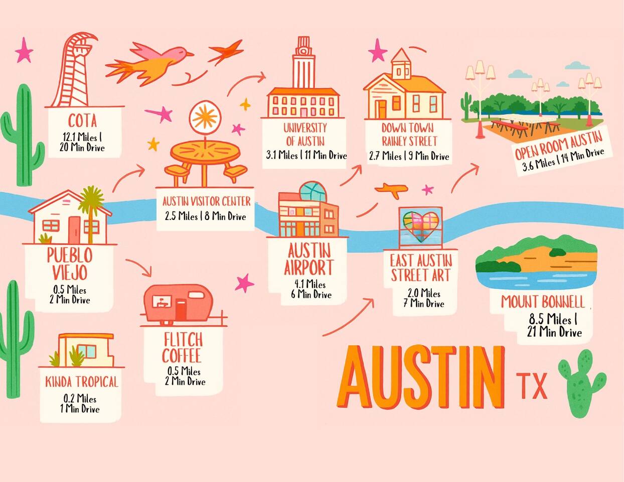 ✔ 2 private bedrooms with Queen-size beds. Bedroom 2 with a sofa bed. Sleeps 5 people. ✔ 2 full bathrooms ✔ Flat screen smart TVs ✔ Fully equipped kitchen with dishwasher, dishes, utensils, toaster, blender, coffee maker, tea pot, and all the cooking/baking basics you need ✔Private patio complete with outdoor seating ✔Google Fiber Internet - FAST! ✔ Outdoor Fire pit (BYO wood) ✔ Washer & Dryer ✔ Free parking on premises + Plenty of street parking **Please note that this listing is not suitable for infants under 2 years old.** If you're planning a stay for a larger group, we have another charming listing at the front of this listing. Feel free to contact us if you'd like to book both units together! **Note that there is another house in front of this listing - the yard is shared between Unit A & Unit B** Room Details Bedroom: ✔ Bedroom 1 - 1 Queen bed ✔ Bedroom 2 - 1 Queen bed + sofa bed Bathroom: ✔ 2 full modern bathrooms featuring showers, bathtubs, hair dryers, hot water, and all the essentials you need for a comfortable stay. Kitchen: ✔ Fully-equipped kitchen features modern appliances, quartz countertops, and everything you need to prepare a delicious meal. Outdoor Living: ✔ Private patio, complete with outdoor seating ✔ Fire pit (BYO firewood) ✔Community Patio: Outdoor dining and table + fire pit, shared with Unit A Parking: ✔ Free street parking available EV Charger On-Site ✔Charge your electric vehicle with ease during your stay. We offer a Level 2 EV charger with a 40A output, 25 ft cable, and standard J1772 connector, compatible with most EVs. Plug-and-play via a NEMA 14-50 outlet and WiFi app-enabled for added convenience. Ideal for overnight charging. Guest access Self Check-In & Check-Out To fully enjoy your vacation, we’ve compiled some of the best places to visit, eat and drink, and things to do. We hope these will make your Austin experience more memorable. → Kinda Tropical | 0.2 Miles | 1 Min Drive → Flitch Coffee | 0.5 Miles | 2 Min Drive → Pueblo Viejo | 0.5 Miles | 2 Min Drive → Austin Airport | 4.1 Miles | 6 Min Drive → East Austin Street Art | 2.0 Miles | 7 Min Drive → Austin Visitor Center | 2.5 Miles | 8 Min Drive → Downtown Rainey Street | 2.7 Miles | 9 Min Drive → University of Austin | 3.1 Miles | 11 Min Drive → Open Room Austin | 3.6 Miles | 14 Min Drive → COTA | 12.1 Miles | 20 Min Drive → Mount Bonnell | 8.5 Miles | 21 Min Drive Nearby Michelin-Star and Award-Winning Restaurants 🍽️ Closest to the Property → la Barbecue – 2401 E Cesar Chavez St, Austin, TX 78702 (≈5 min drive) → Olamaie – 1610 San Antonio St, Austin, TX 78701 (≈10 min drive) → Hestia – 607 W 3rd St, Austin, TX 78701 (≈10 min drive) Within ~20–25 Minutes → InterStellar BBQ – 12233 Ranch Rd 620 N, Austin, TX 78750 → Barley Swine – 6555 Burnet Rd #400, Austin, TX 78757 → Craft Omakase – 4400 N Lamar Blvd, Austin, TX 78756 Further South (Still in Austin) → LeRoy & Lewis Barbecue – 121 Pickle Rd, Austin, TX 78704